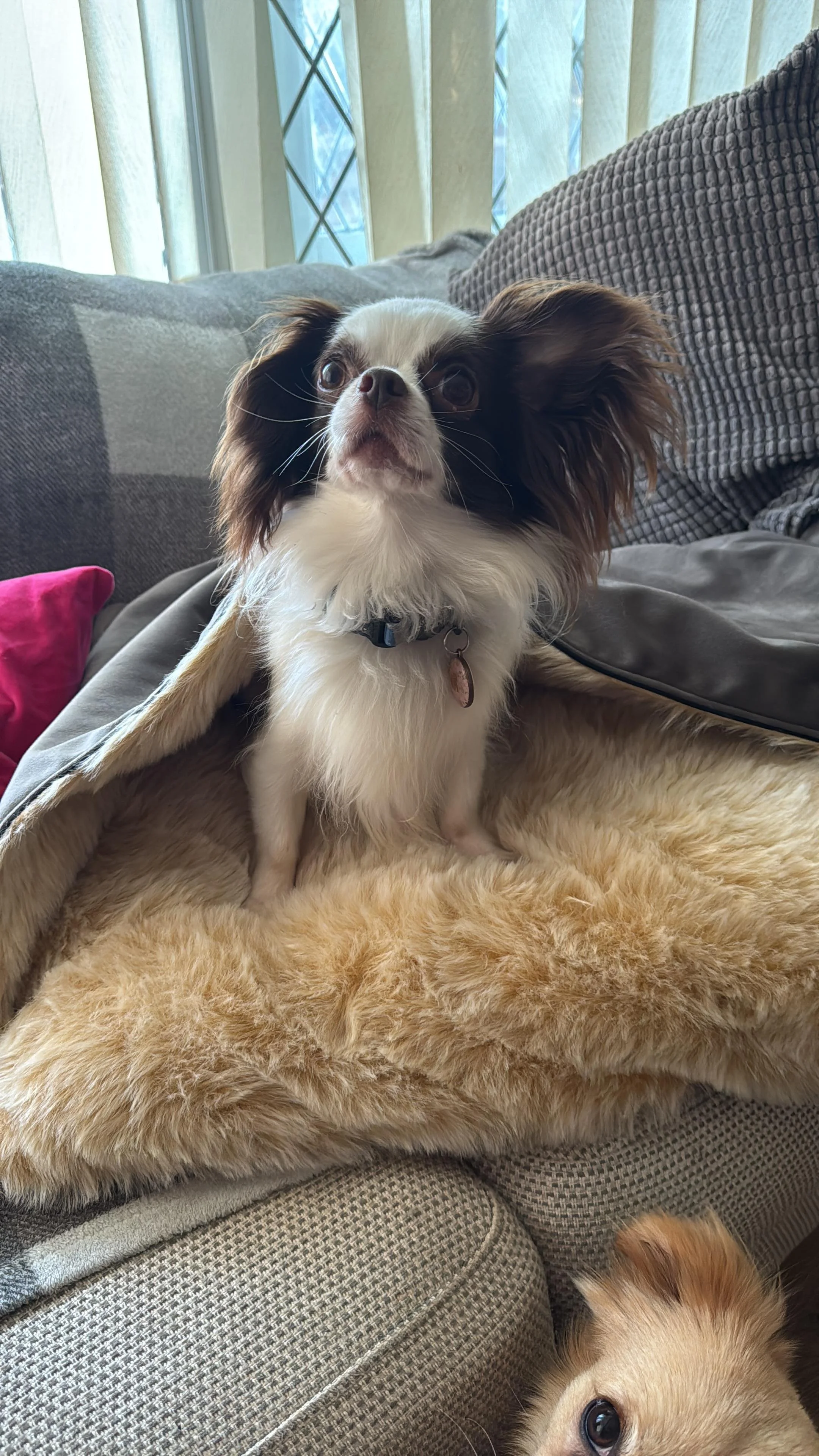 She’s super friendly, loves absolutely everyone, and is an expert at demanding attention (and snacks). Minnie is perfect for dogs who need gentle, positive exposure to small, confident dogs.
